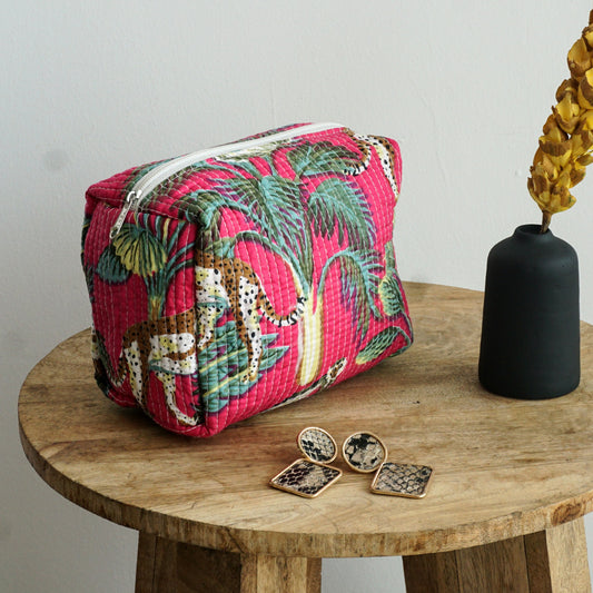Handblock Print Travel Pouch | Magenta Pink
