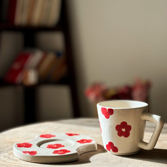 Sold outRed Blooms Cup & Saucer