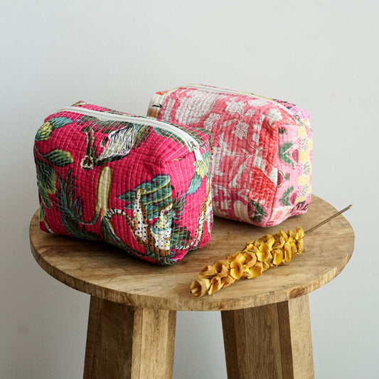 Handblock Print Travel Pouch | Light Pink