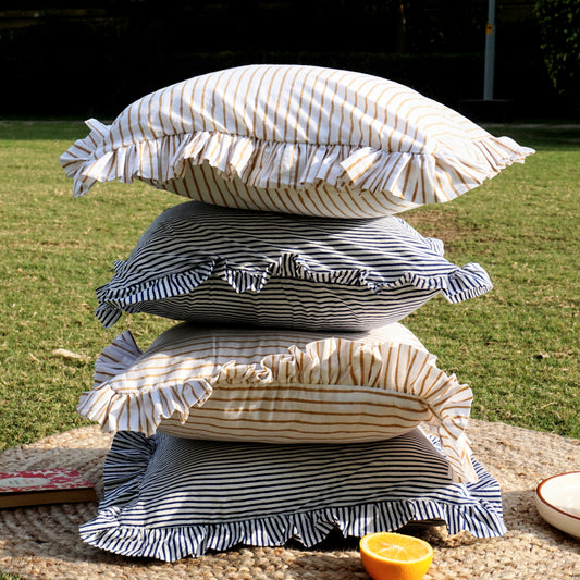 Hand Block Print Cushion Cover Stripes | Set of Five