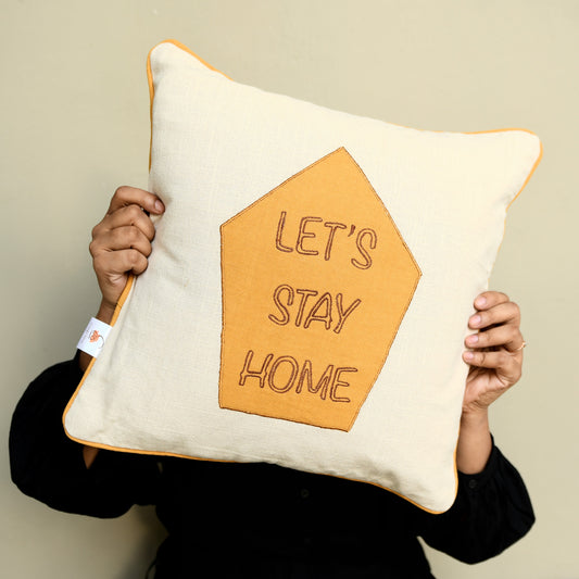 Let's Stay Home Hand-Embroided Cushion Cover | Buy One, Get One FREE