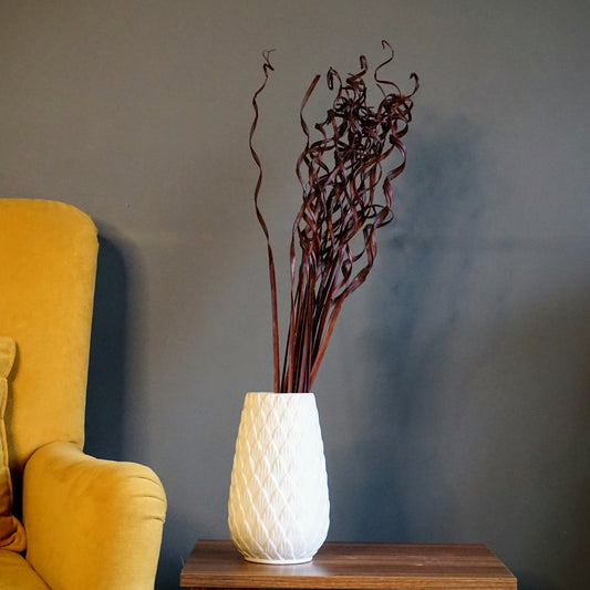 White Ribbed Vases With Dried Leaves Combo