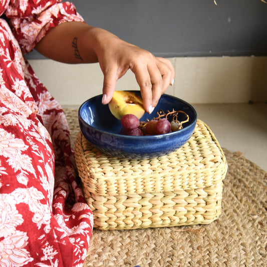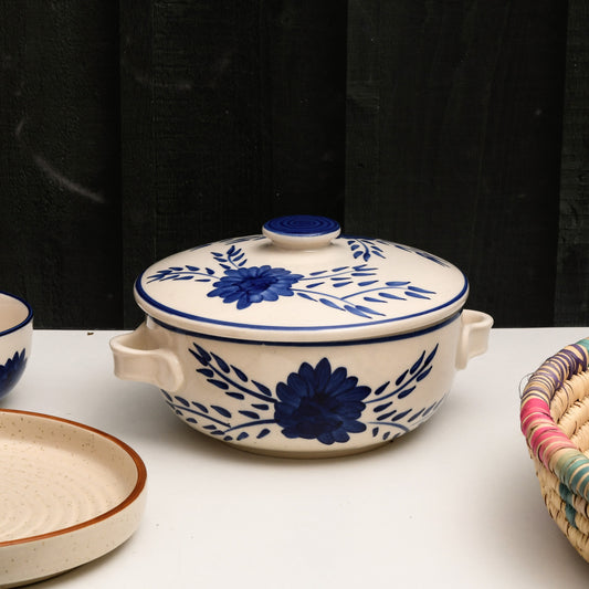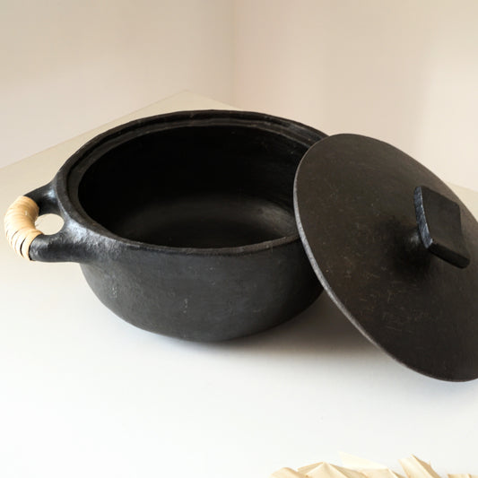 Longpi Black Pottery Kadhai with Lid and Cane Handle