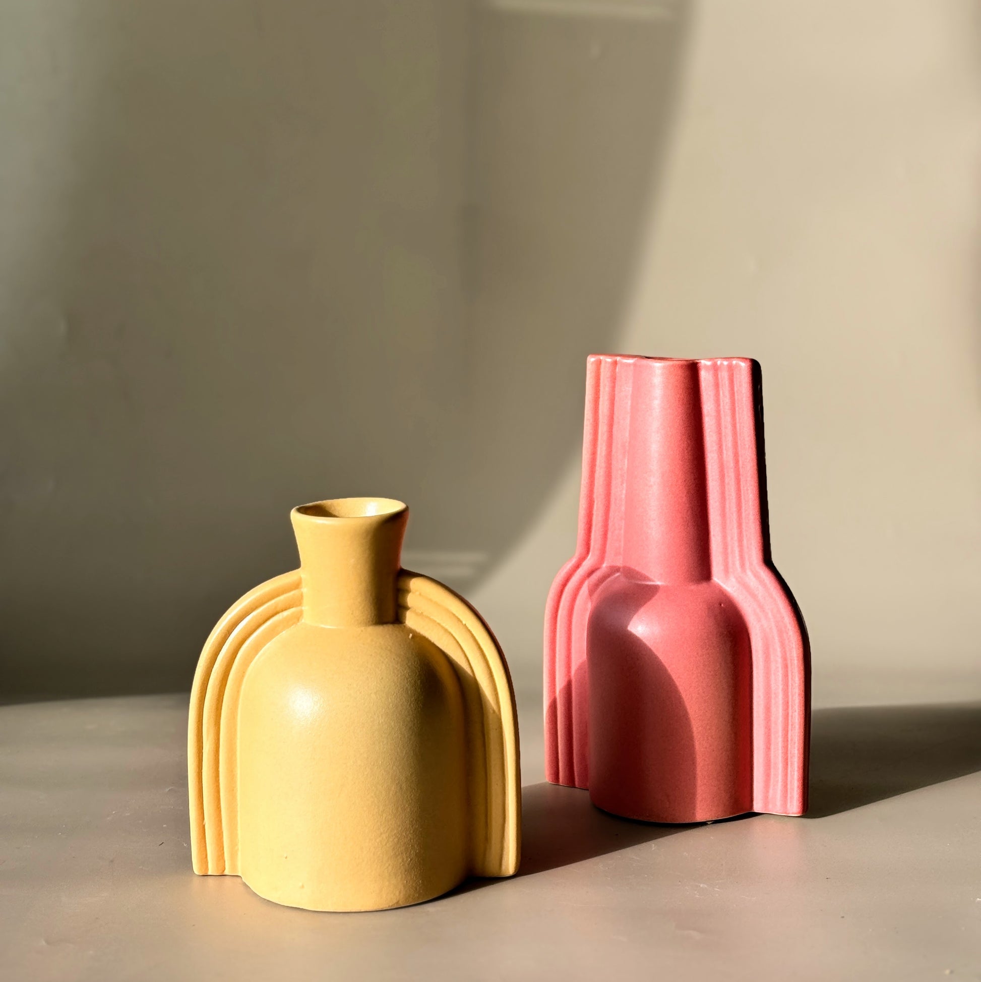 Introducing our Abstract Ceramic Vase Combo, where yellow meets pink in a dance of creativity and style! Add a pop of color and a touch of whimsy to your space with this vibrant duo that's sure to turn heads and spark conversations.