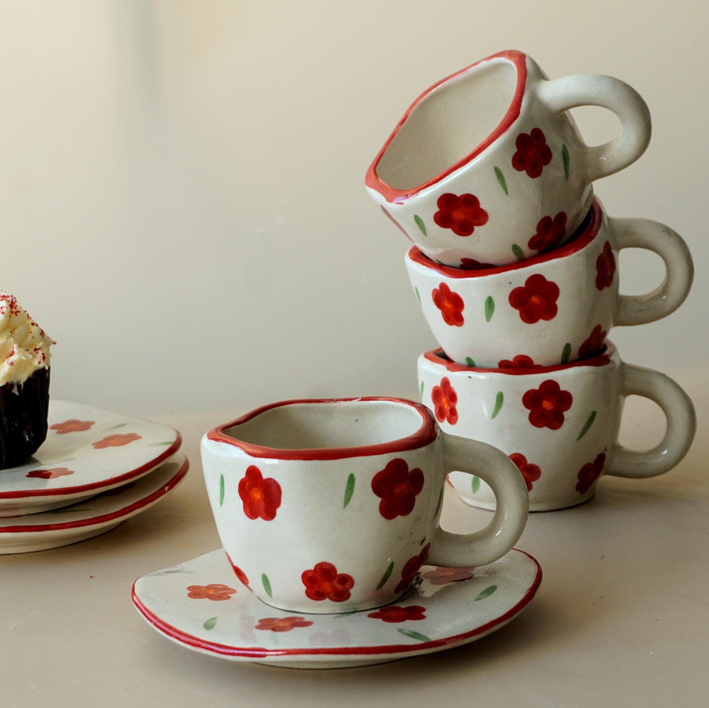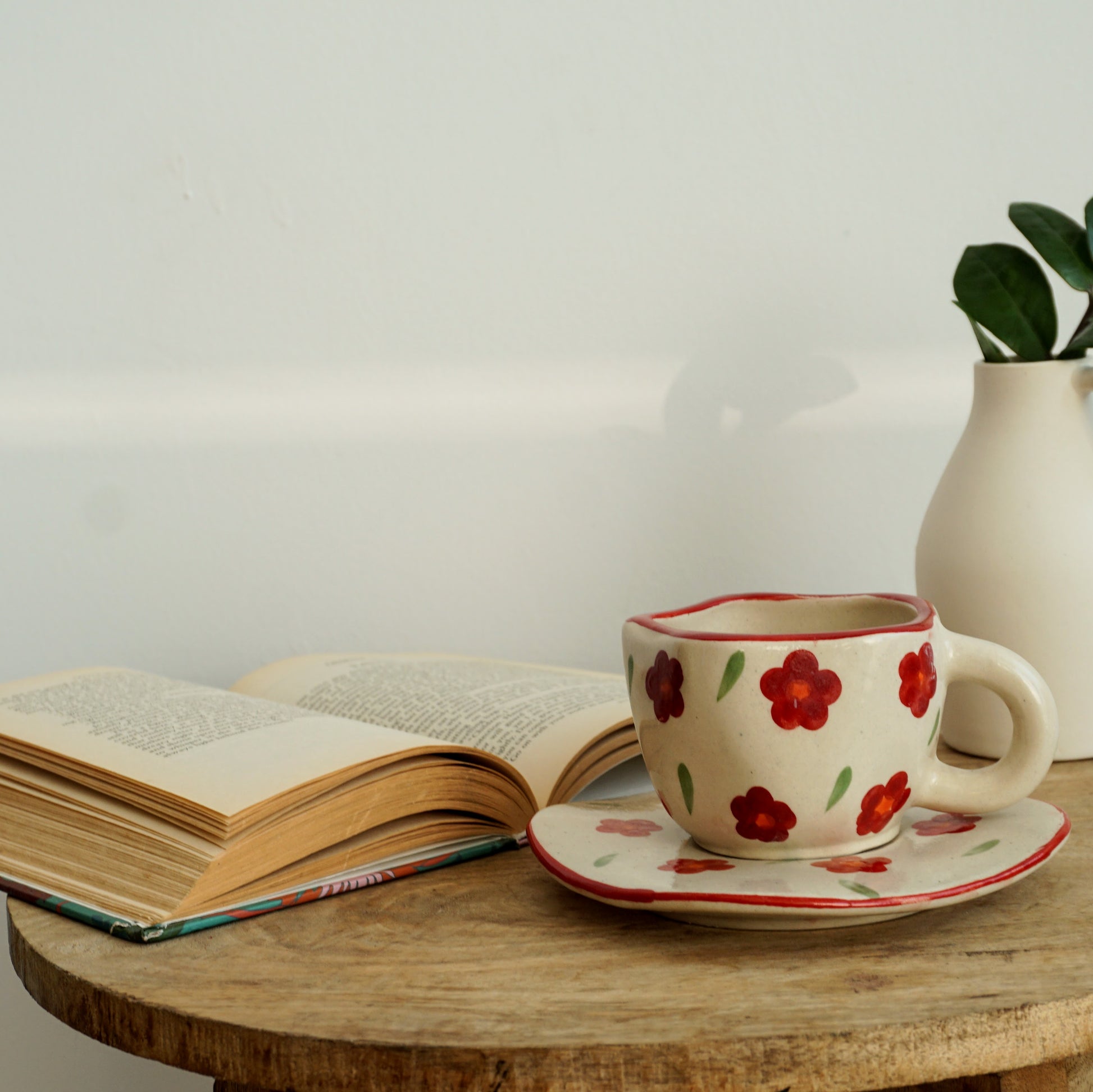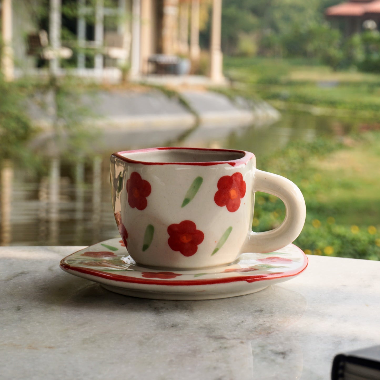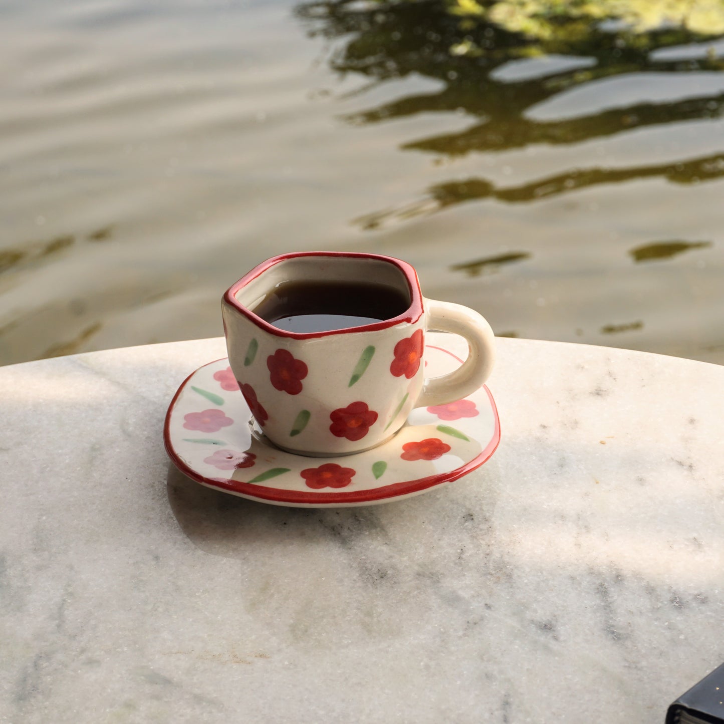 Pretty Flowers Cup & Saucer | Slight Uneven Texture